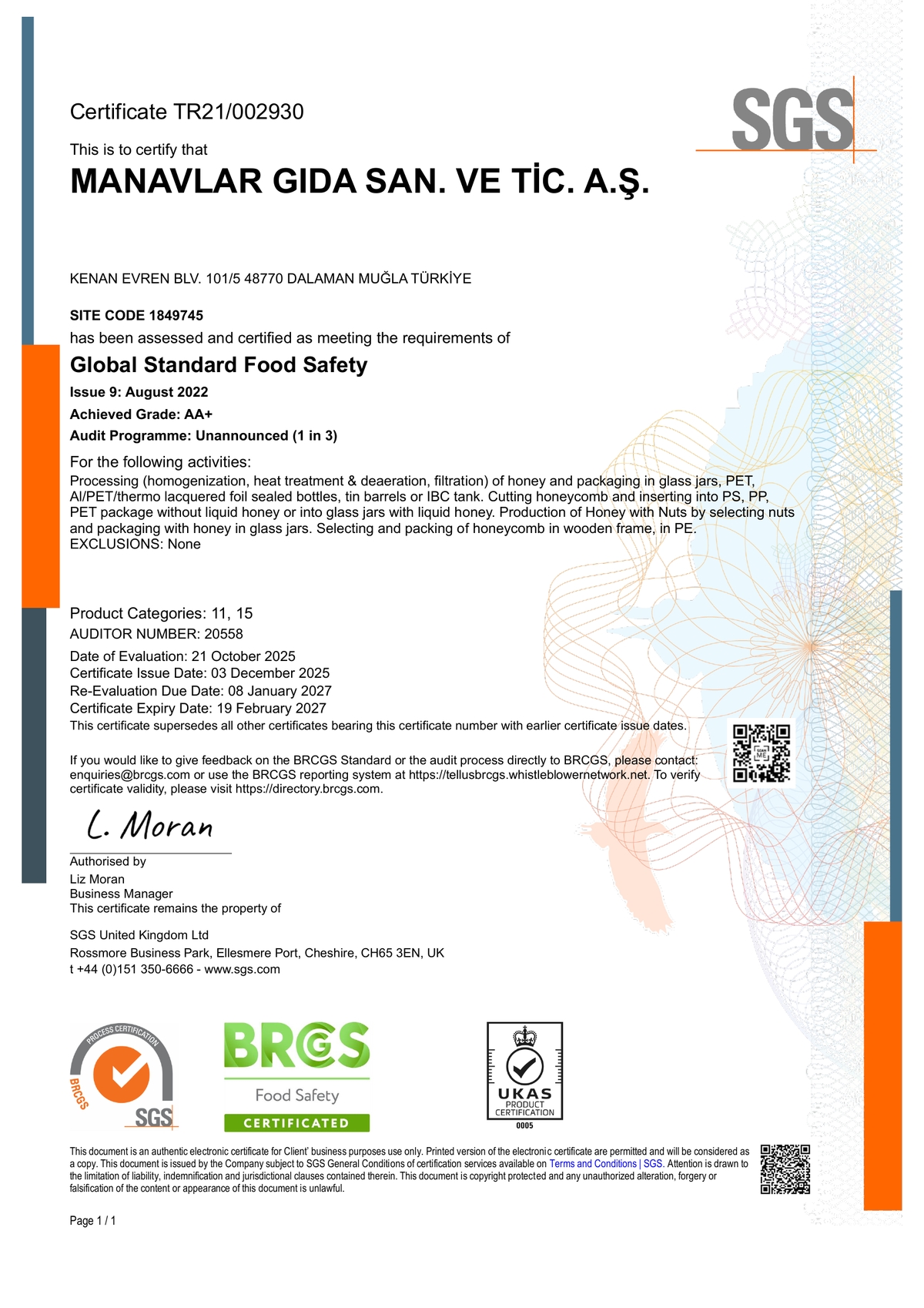 We receive training on the food safety and quality standards recognized by GFSI and apply those standarts. As per the quality certificates that we have been granted, we follow the global requirements and keep our quality standarts at the highest level at all times and we try hard to improve ourselves accordingly.